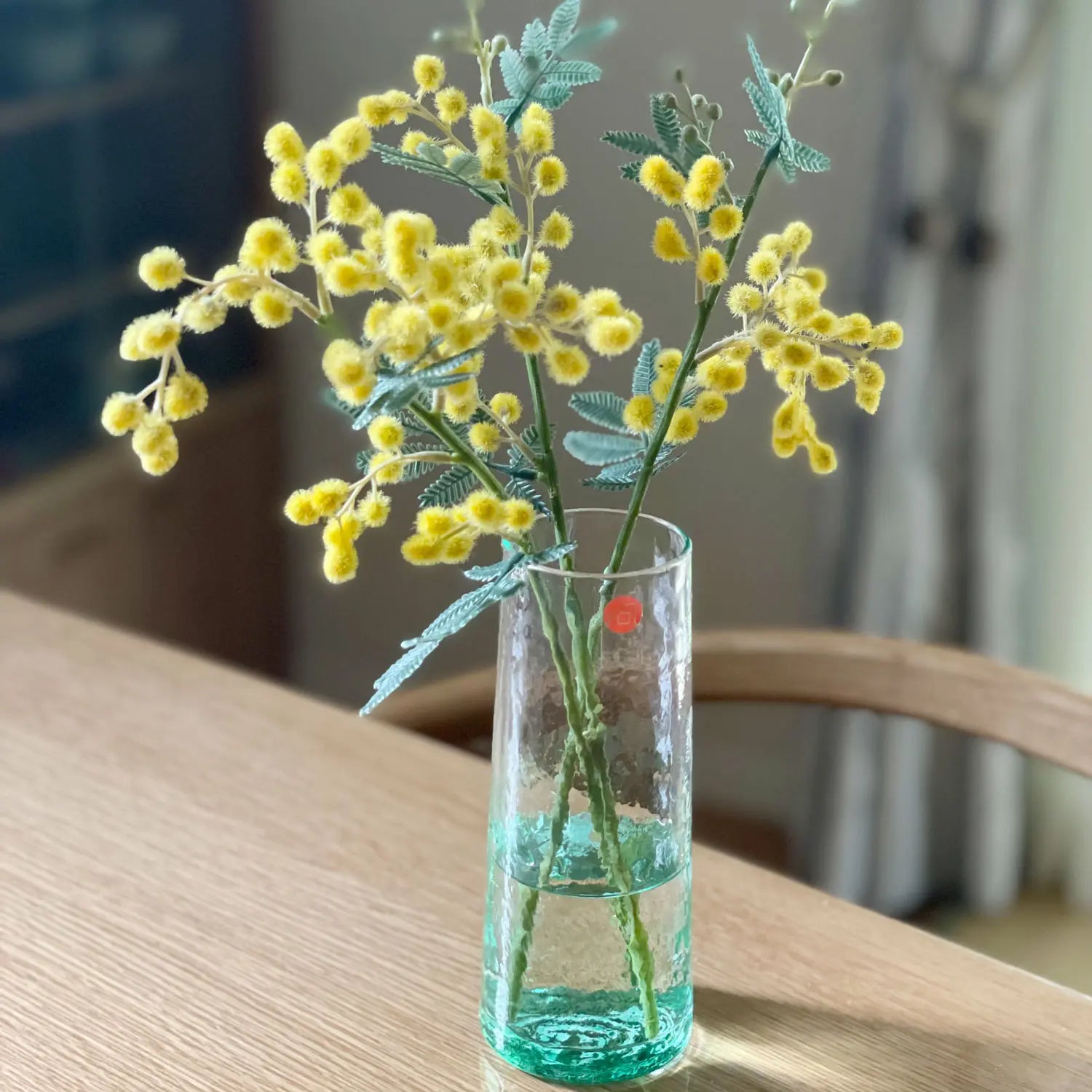 津軽びいどろの、色のミニ花瓶はまるでエメラルドグリーンの湖を見ているよう。入れているお花で雰囲気が変わります。黄色やピンクの色のお花とともに母の日にいかがですか。