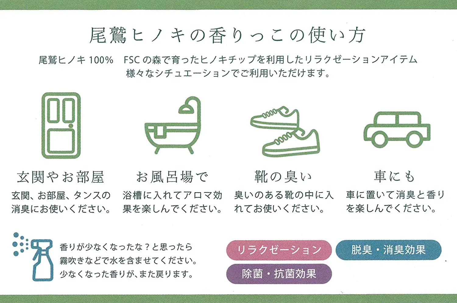 ヒノキチップの香りを繰り返しお楽しみいただけます。