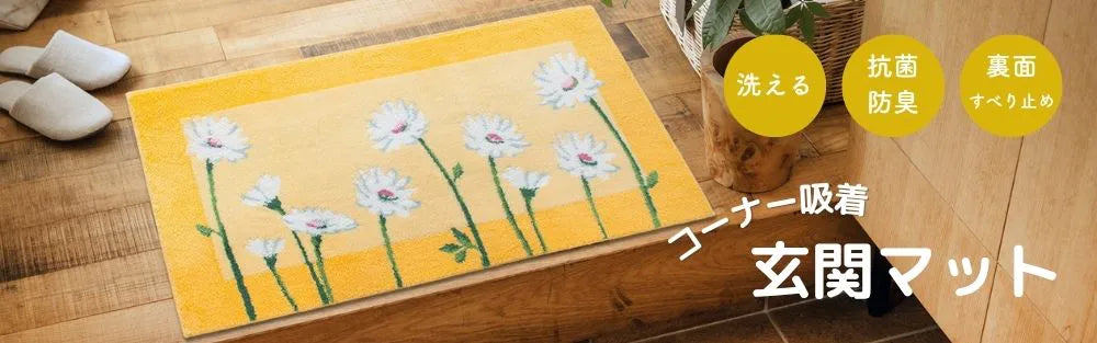 風水のラッキーカラーでもある山吹色がメインカラーの洗える玄関マット「イノセントデイジー」。
