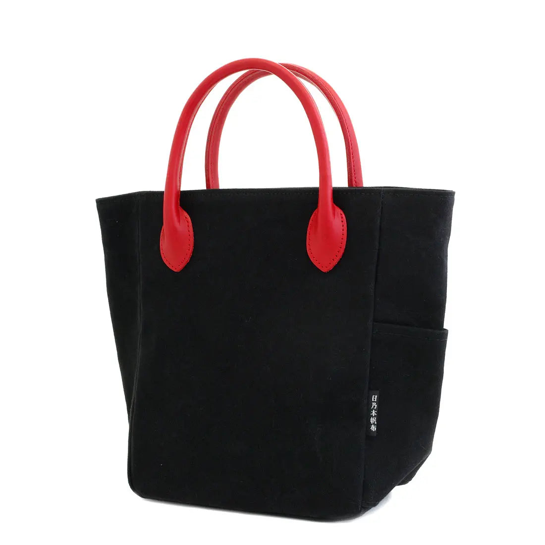 軽量感のある 9 号帆布のこのデイリートートバッグは丸底なので支えがなくてもたおれない自立するトートバックです。