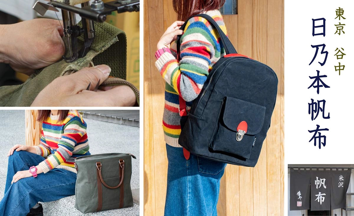 名称の通り、高い耐久性と防水性から船の帆の素材として使われ、明治時代から重宝されてきた帆布。