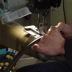 ミシンや機材も帆布用に針や仕様を改良した特別製。