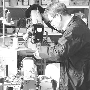 国産帆布の生地は、頑丈な防水加工や生地の硬さから、一般のキャンバス生地の加工に比べれば、制作工程が大変なため、専門の技術を用いた職人たちが加工しております。