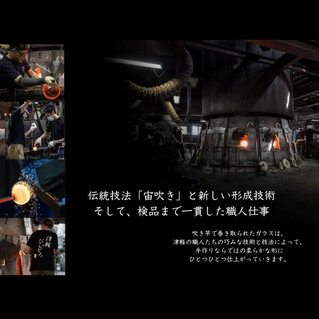 古来より受け継がれた宙吹きの技法による手作りならではの柔らかな形と色合わせの美しさを最大限表現した作品です。