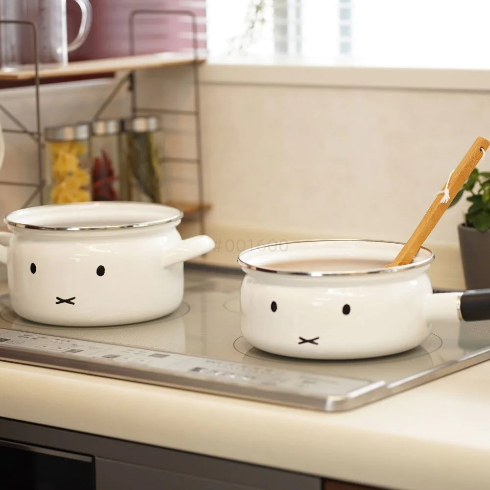 富士ホーロー ミッフィー ソースパン 18㎝ (2.5L) 片手鍋 フタ付 ホーロー鍋 調理器具 IH ガス火 シンプル おしゃれ 琺瑯