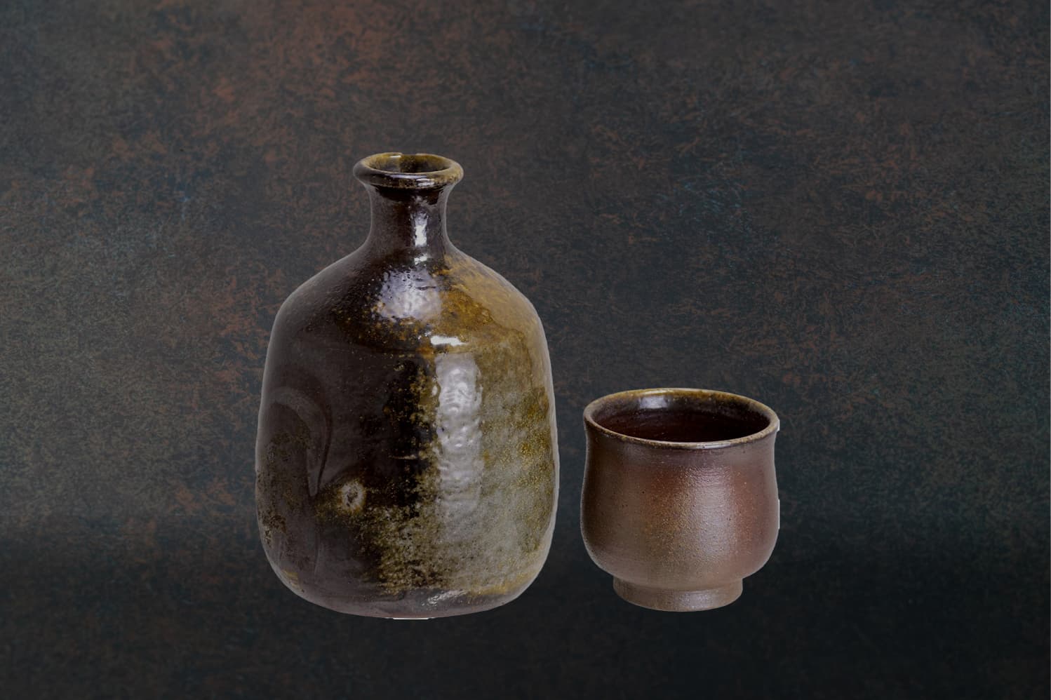 土と火の変化の代表作の備前焼の徳利とぐい呑み。