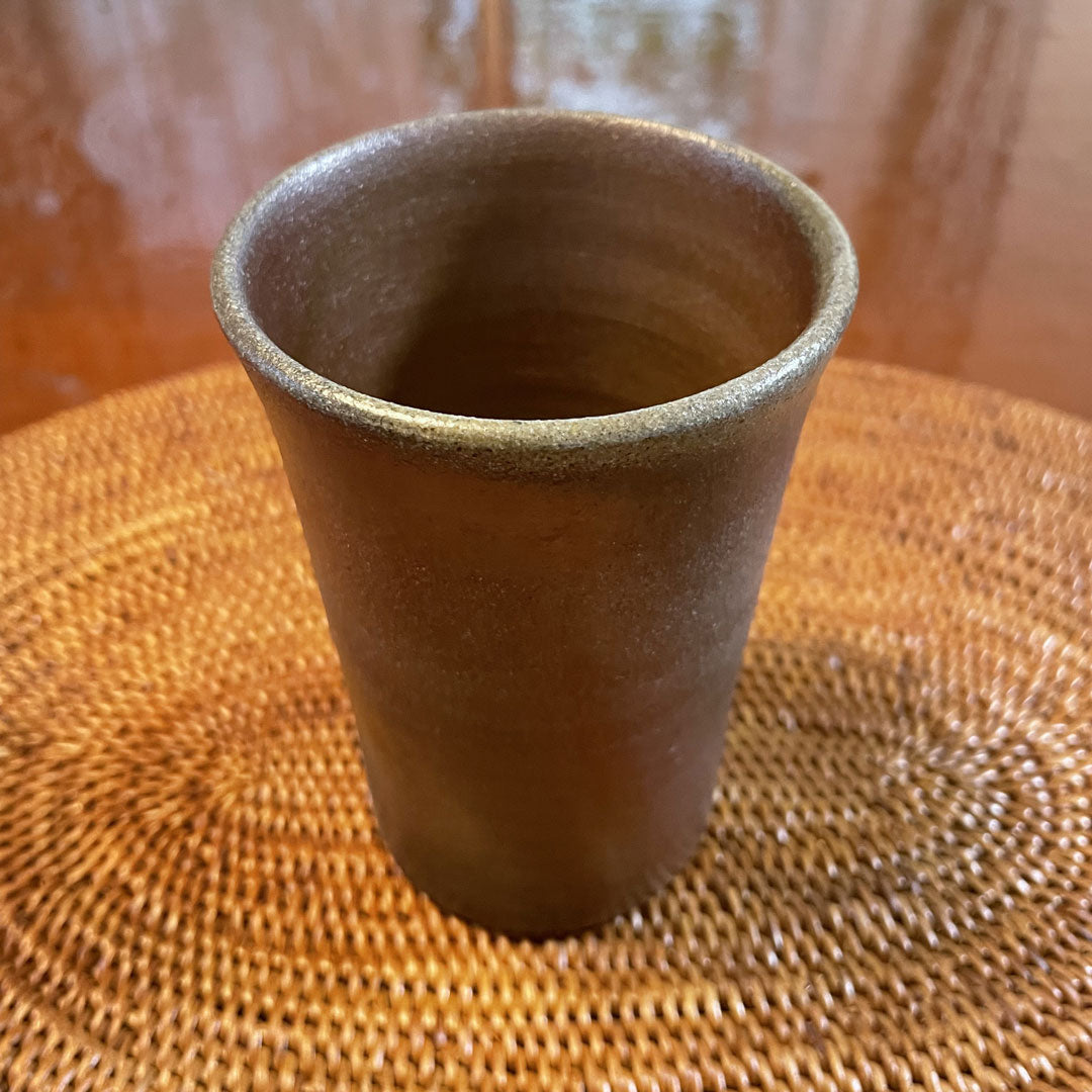 夢幻庵の備前焼ティーカップは、ぽってりと厚手ながらすっきりとしたフォルムで、備前焼らしい味のある表面です。ザラっとしたぬくみのある質感は、いつものコーヒータイムがちょっと豊かになる、そんな優しいうつわです。おそろいのスプーンもぽってりしたフォルムでとてもかわいい備前焼です。
