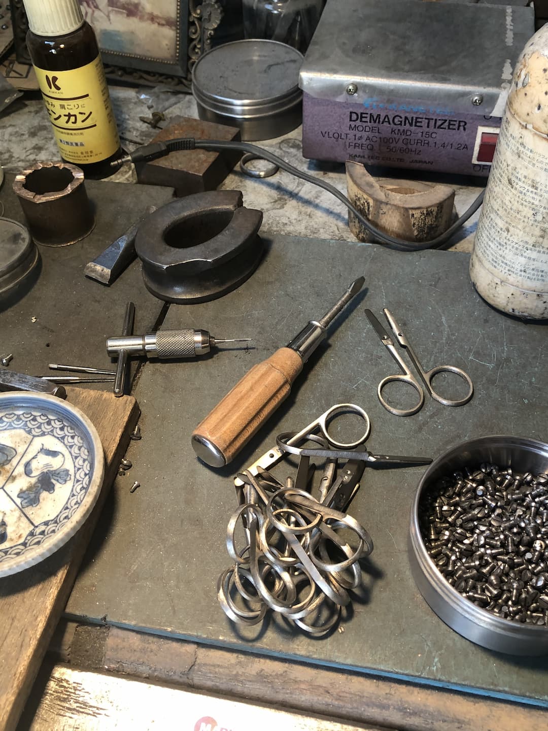 すみだモダン認証の「裁ち鋏」から「職人が大切な人に贈ったはさみ」など、貴重な制作過程を工房で見せていただきました。